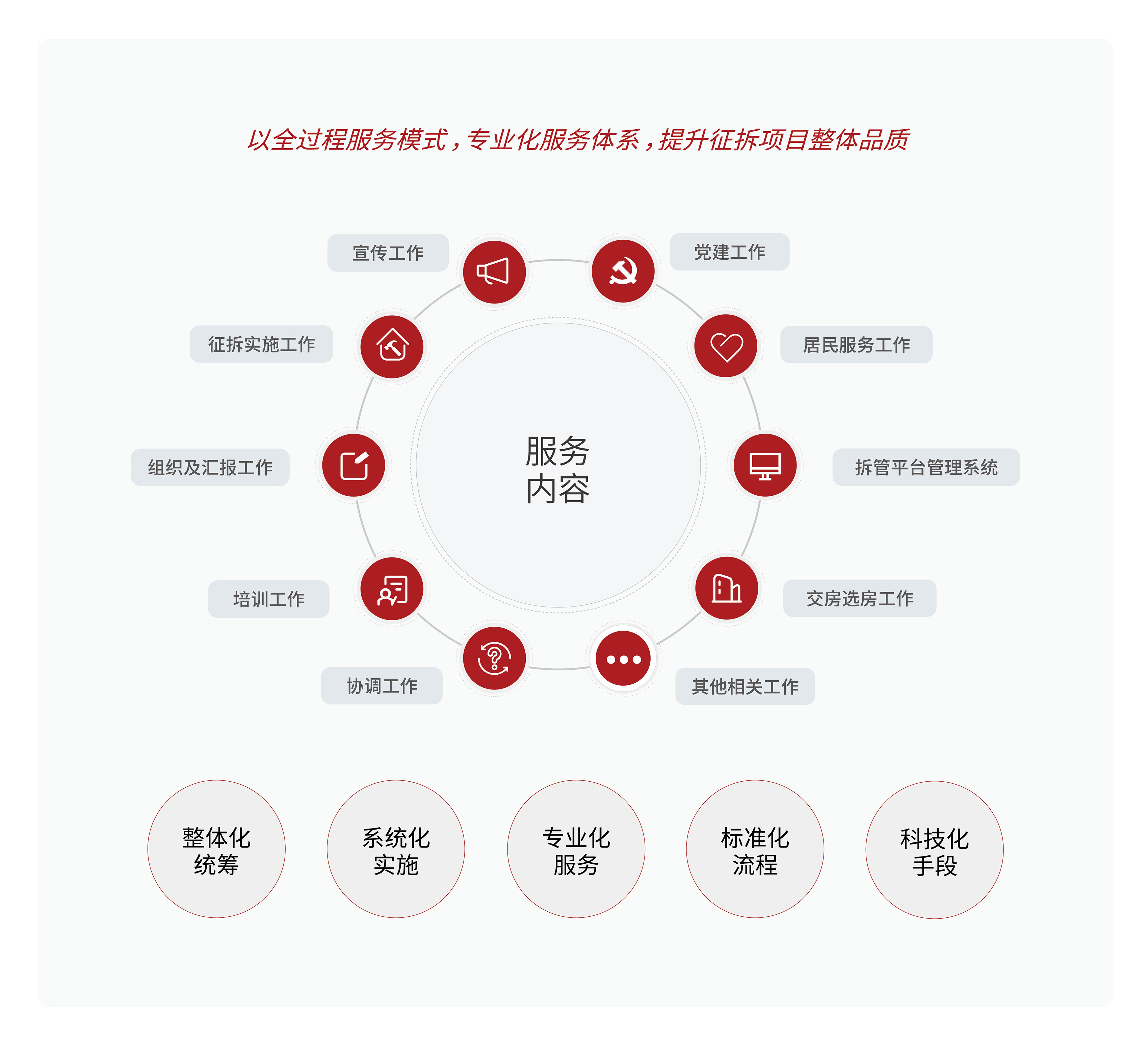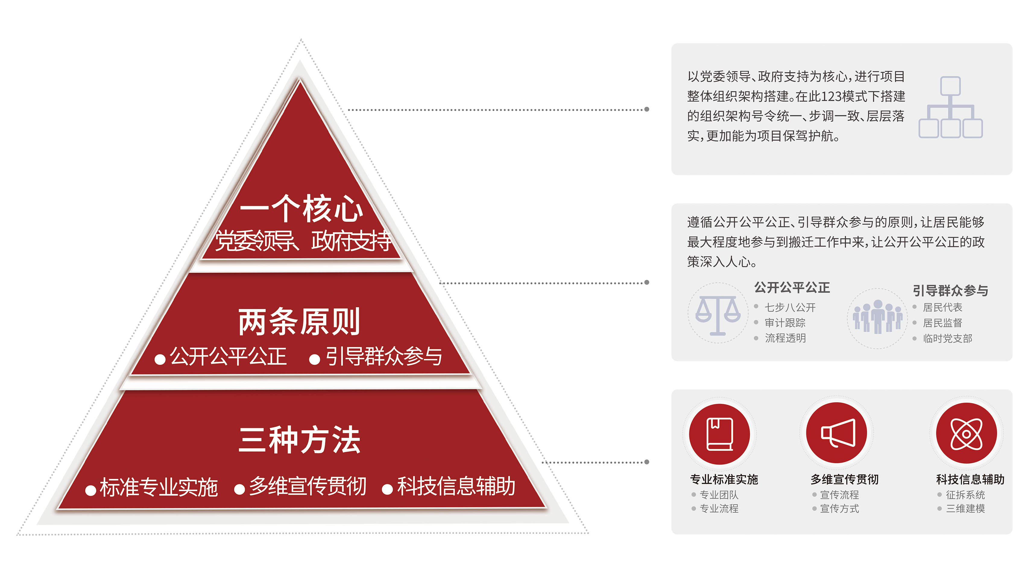 征拆全程咨詢和談判簽約服務是采用標準的談判體系、規范的工作流程、專業的服務手段、透明的工作方式、合理的補償方案、先進的信息系統,全方位塑造被征拆人對政府部門的信任、對征拆工作的支持,以保障項目快速、高效完成。